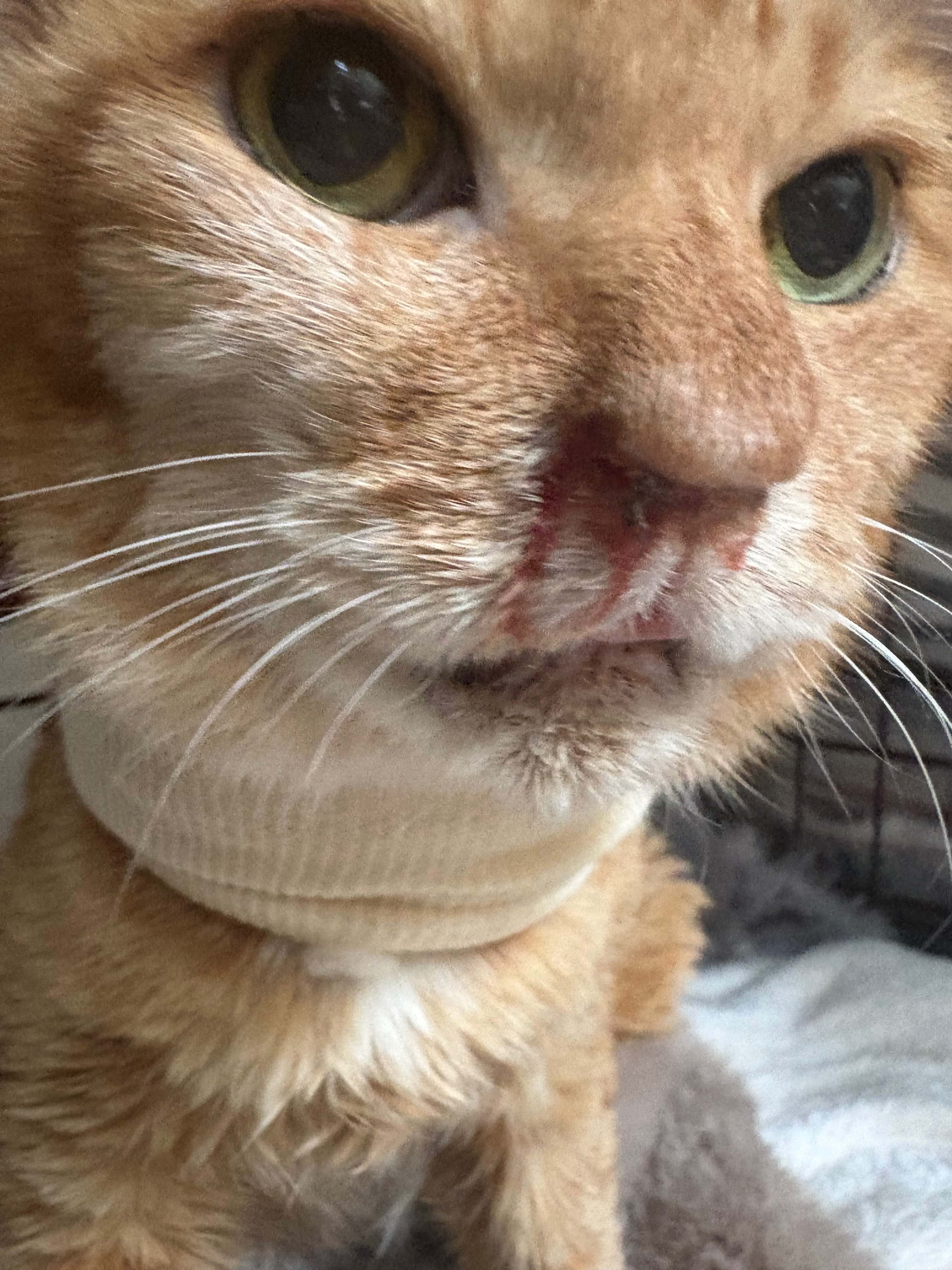 この画像よりもっと激しい血様の鼻漏が続いたようですが、最もひどい時の画像は忍びなくて撮ることもできなかったと飼い主様から聞いております。
